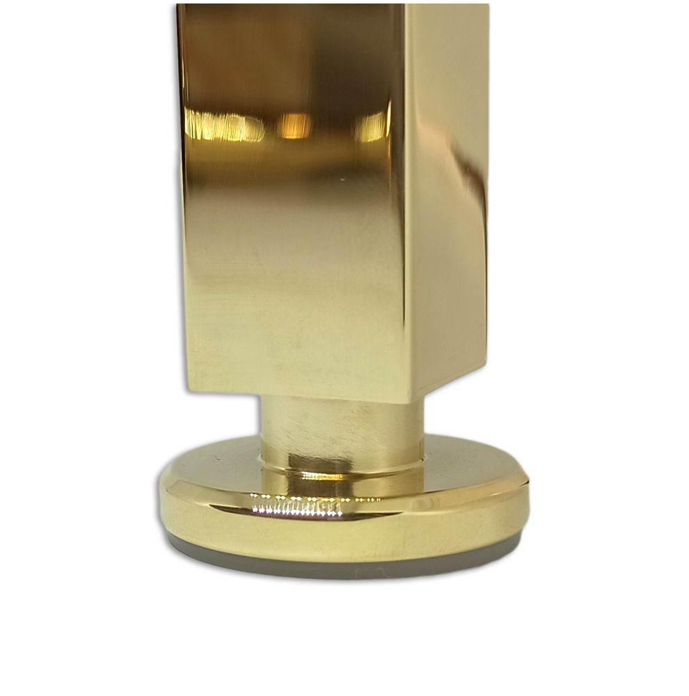 Joli pied de meuble de profil carré en laiton poli non verni, avec base antidérapante en silicone qui empêche les rayures sur votre sol.